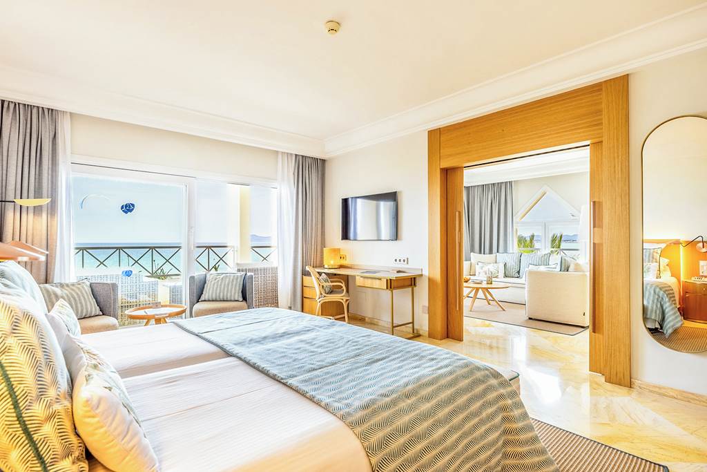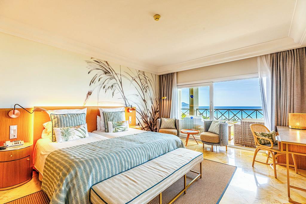 Similar in layout to the Standard Double Room but with a side sea view from the balcony – lovely for evening sunsets.