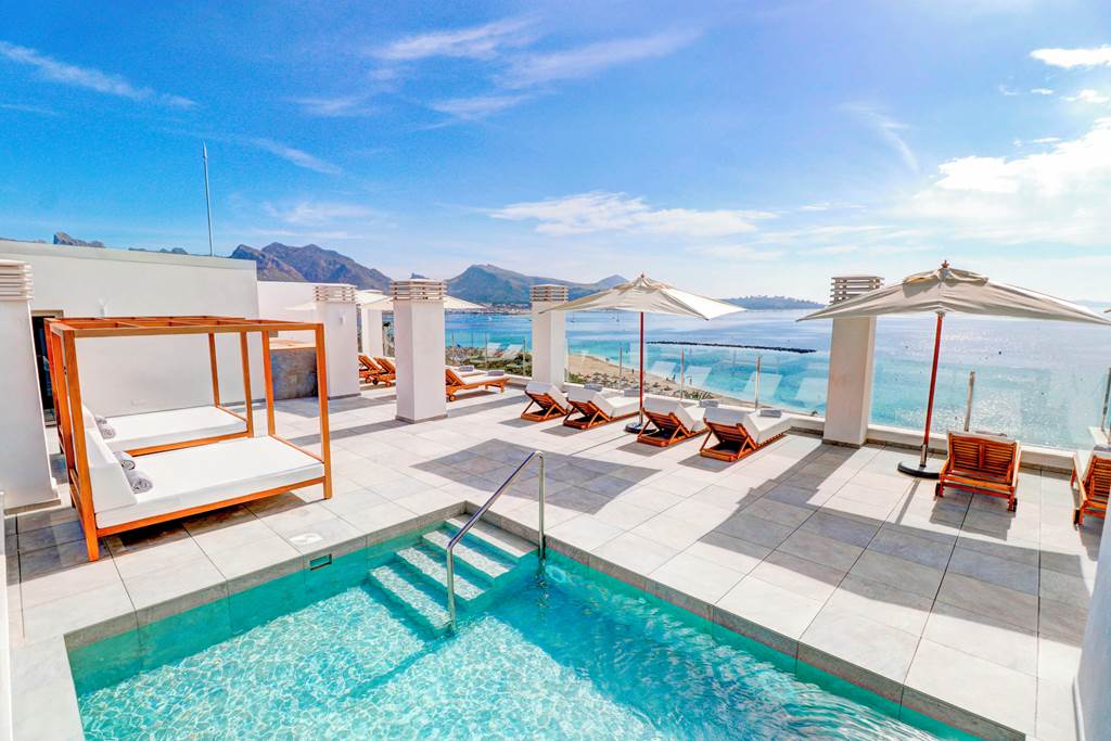 This contemporary, adults-only boutique hotel sits directly on Puerto Pollensa’s sweeping bay, pairing soft-sand beachfront access with cinematic sea views and a chic rooftop pool. With just 64 rooms, Hoposa Pollentia Hotel feels intimate and relaxed – ideal if you want stylish design, strong coffee at breakfast and the resort’s restaurants and Pine Walk promenade just a short stroll away.