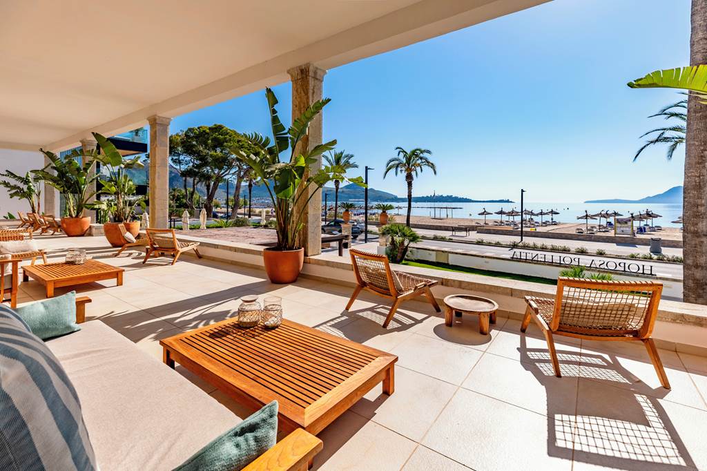 Set along Puerto Pollensa’s palm-lined seafront, Hoposa Pollentia Hotel occupies a privileged beachfront position in a sheltered horseshoe bay, with the Tramuntana Mountains framing the horizon. Step outside and you’re a few strides from the golden sand and shallow, calm waters – ideal for long, lazy beach days.