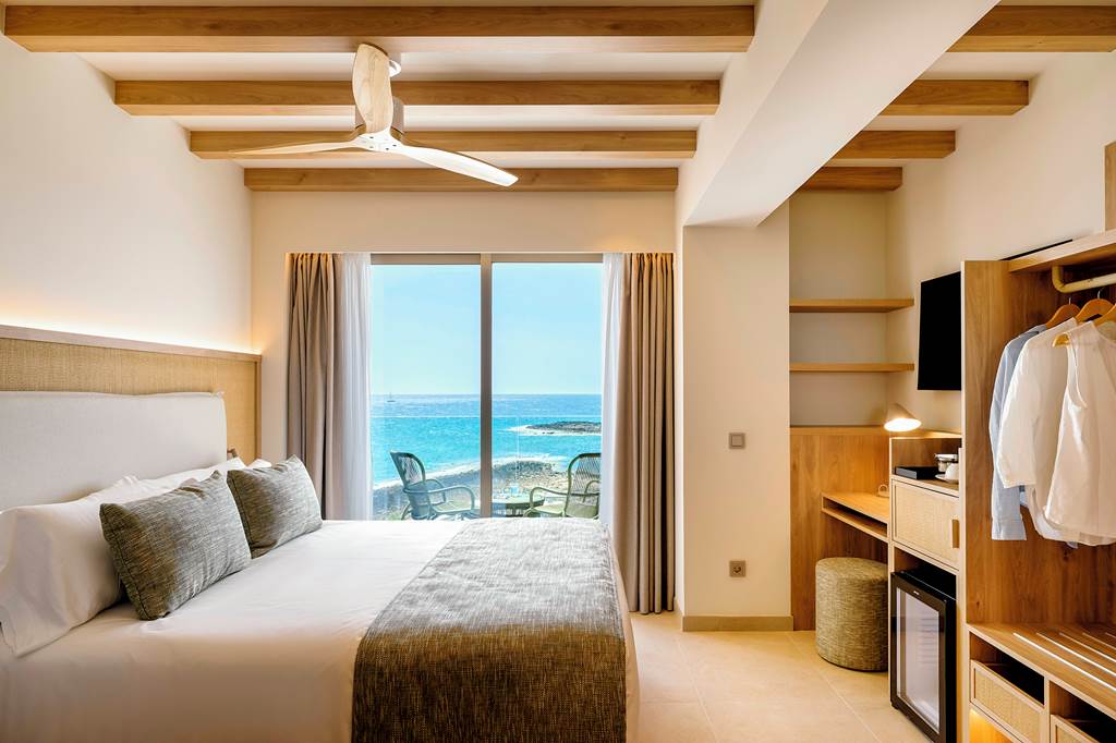 For full or enhanced sea views, look for Premium Double Rooms with Sea View and Terrace, Double Rooms with Sea View (including upper-floor versions), Superior Doubles with Sea View, Junior Suites with Sea View and Suites with Panoramic Sea View. Star Prestige sea-view suites also maximise the outlook.