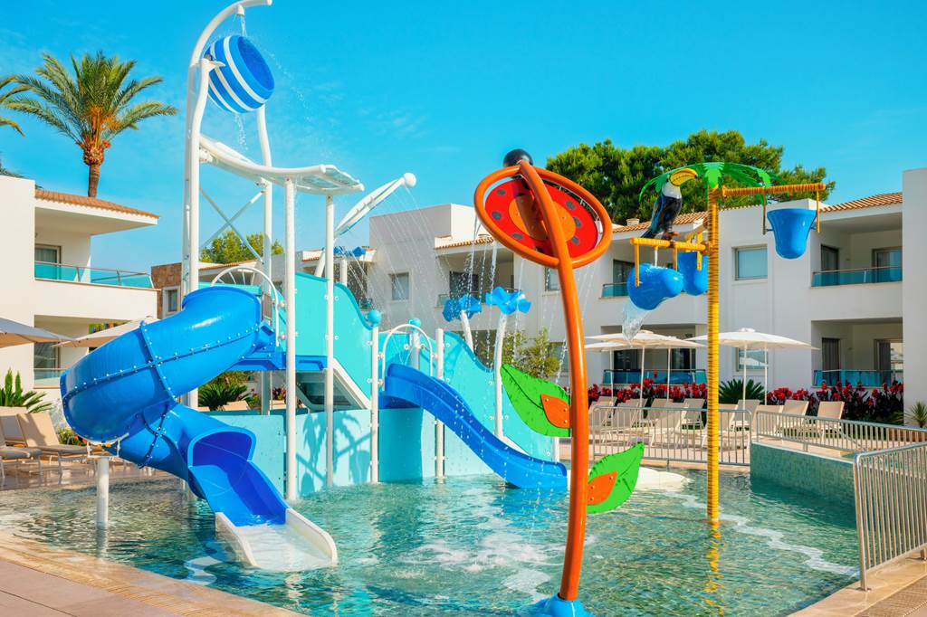 5. Does Iberostar Selection Playa de Muro Village have an aqua park and kids’ splash areas?