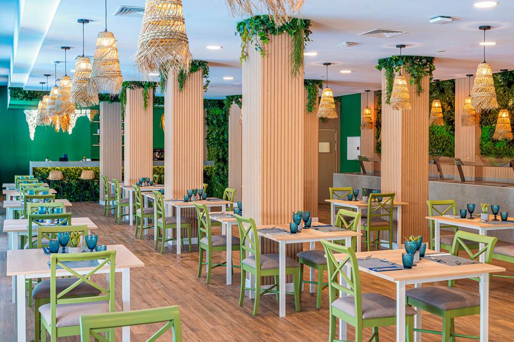 Start and end the day at the main buffet restaurant, set by the pool with a relaxed, coastal feel. Breakfast and dinner are served here for Half Board guests, with hot and cold choices and a mix of local Mediterranean flavours and international favourites. Beachwear is discouraged indoors, so plan a quick change before meals.