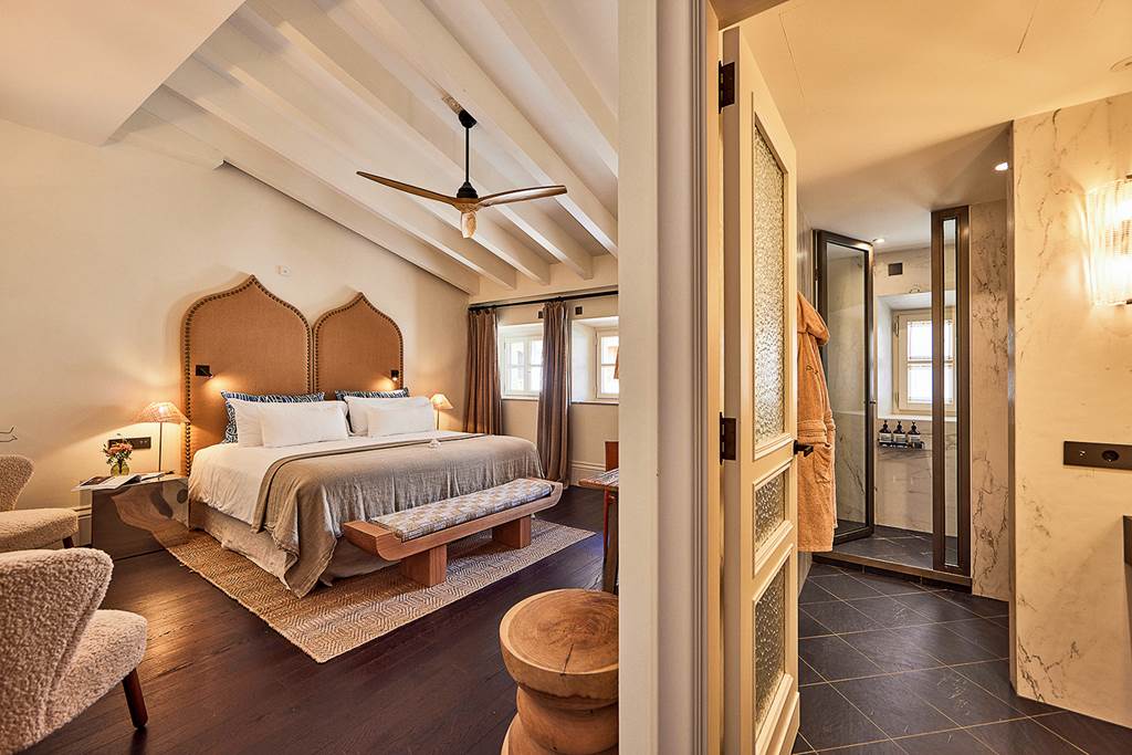Essence Suites showcase some of the most characterful spaces in the building, often with a balcony and original architectural details. Sleeps 1–2. Facilities mirror the top categories: flat-screen TV, Wi-Fi, safe, coffee facilities, kettle, bathrobes and slippers, hairdryer, minibar* and a bathroom with both bath and separate shower for added flexibility. Air conditioning runs seasonally and daily servicing is included.