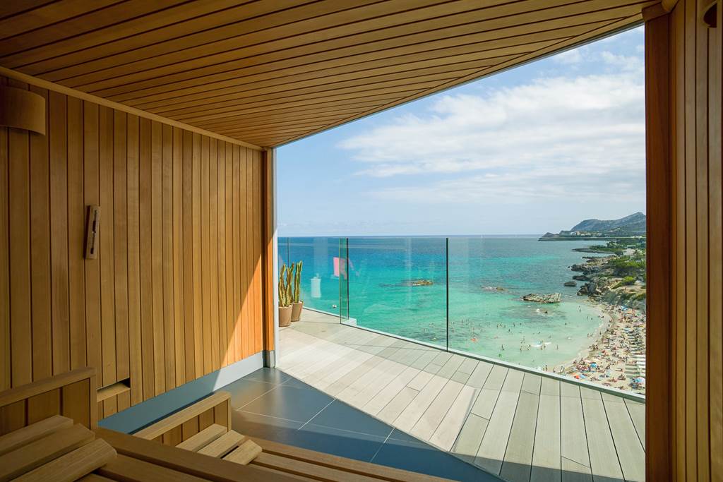 Views are the star of the show at Son Moll Sentits Hotel & Spa. Floor‑to‑ceiling glass, sea‑facing terraces and a tiered pool deck blur the line between hotel and horizon, while the rooftop Attik restaurant and the spa’s picture‑window sauna make the most of the glittering bay below.
