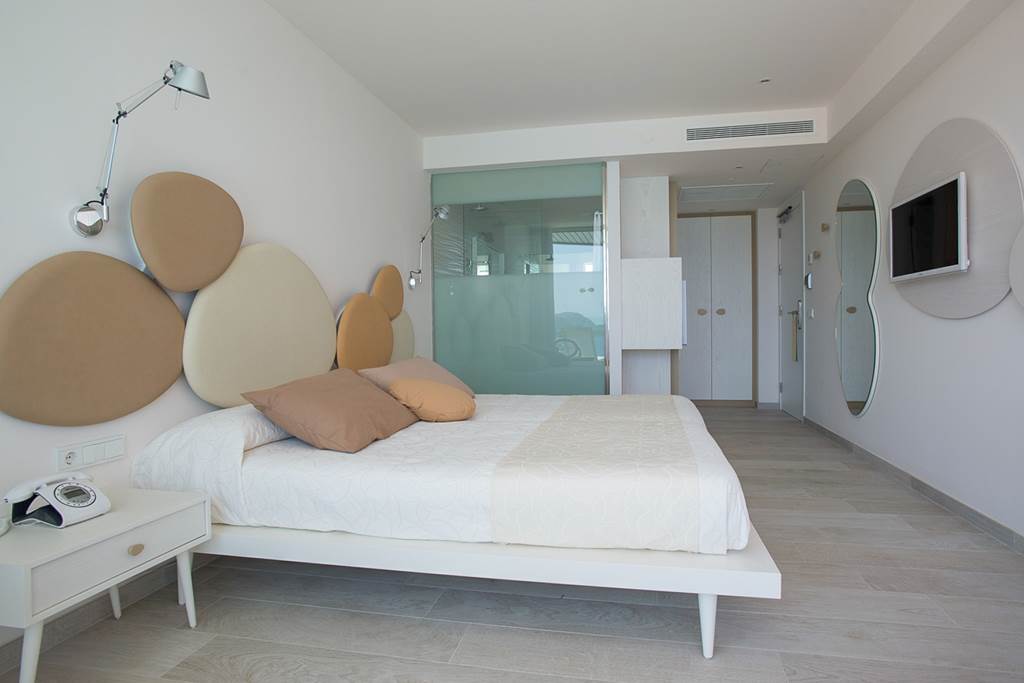 A stylish bar and a pool bar on the terrace keep drinks and light snacks coming from morning until late, with cocktails, wines and chilled Balearic vibes as the sun goes down.