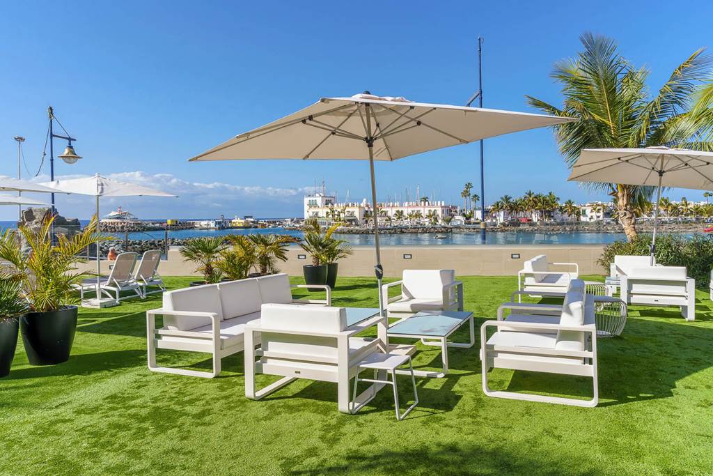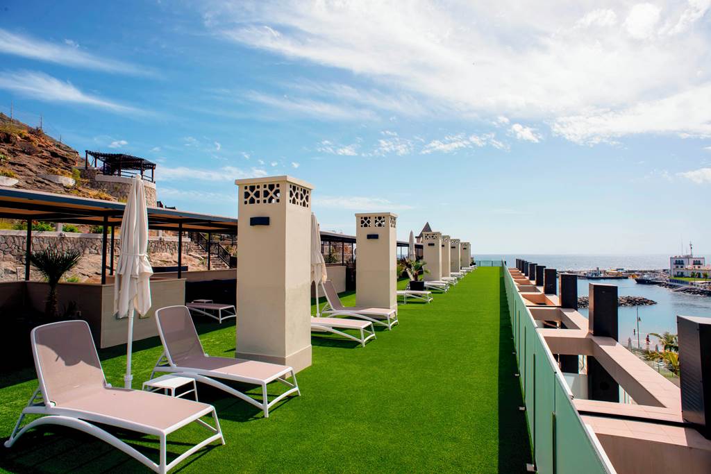 The real centrepiece here is the elevated outdoor freshwater pool, framed by a wide sun terrace with loungers, Balinese beds and parasols. It’s sized just right for the 22 apartments, so it rarely feels crowded, and the outlook over the bay and harbour is a constant reminder you’re in one of Gran Canaria’s prettiest spots.