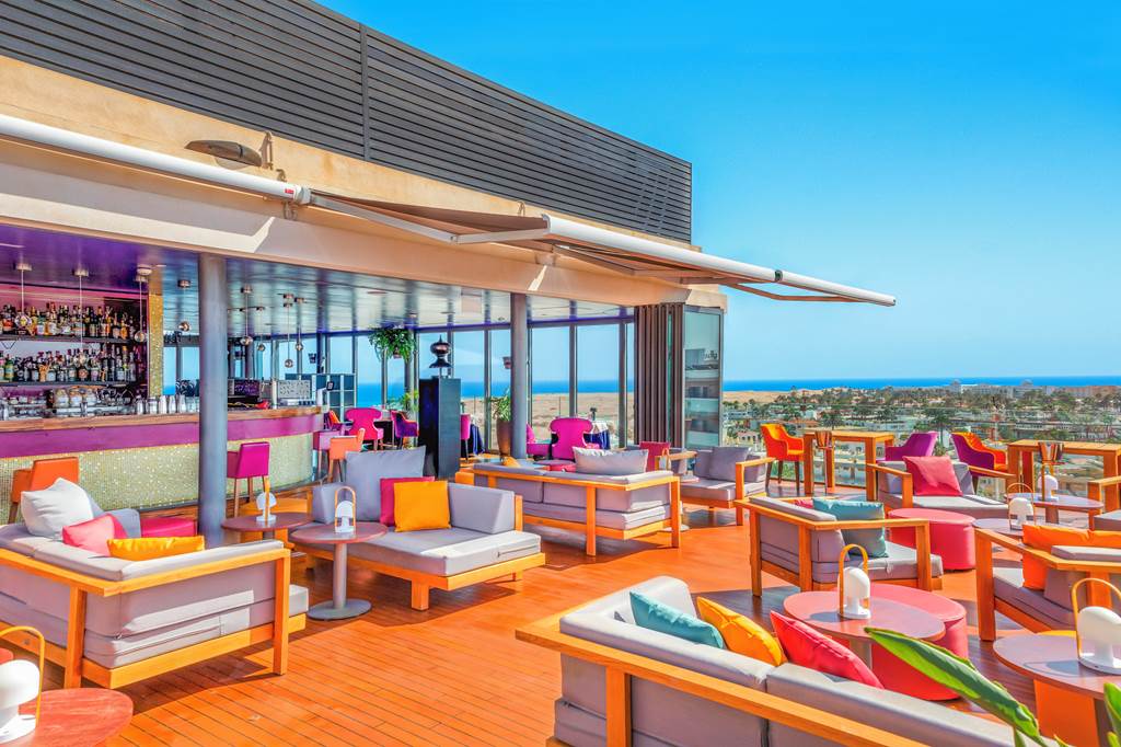 Perched on the rooftop, the signature 360° Restaurant serves refined international, Spanish and local Canarian cuisine for breakfast and dinner, with live show cooking and wraparound glass walls framing the dunes and ocean. Expect carefully curated tasting menus, local produce and beautiful wine pairings in a romantic, adults‑only setting.