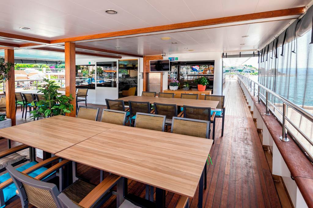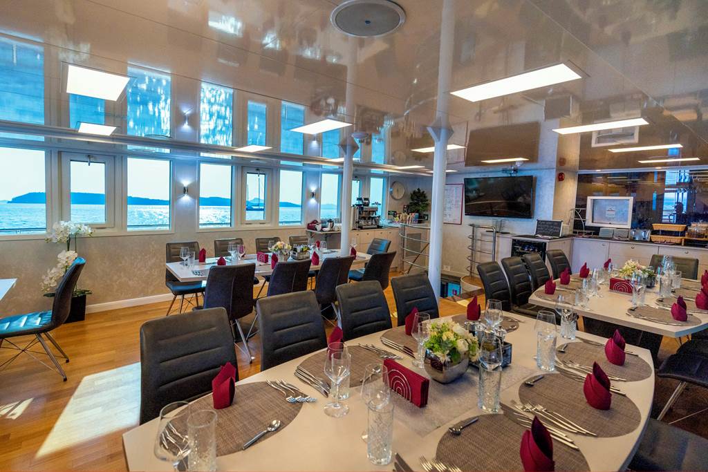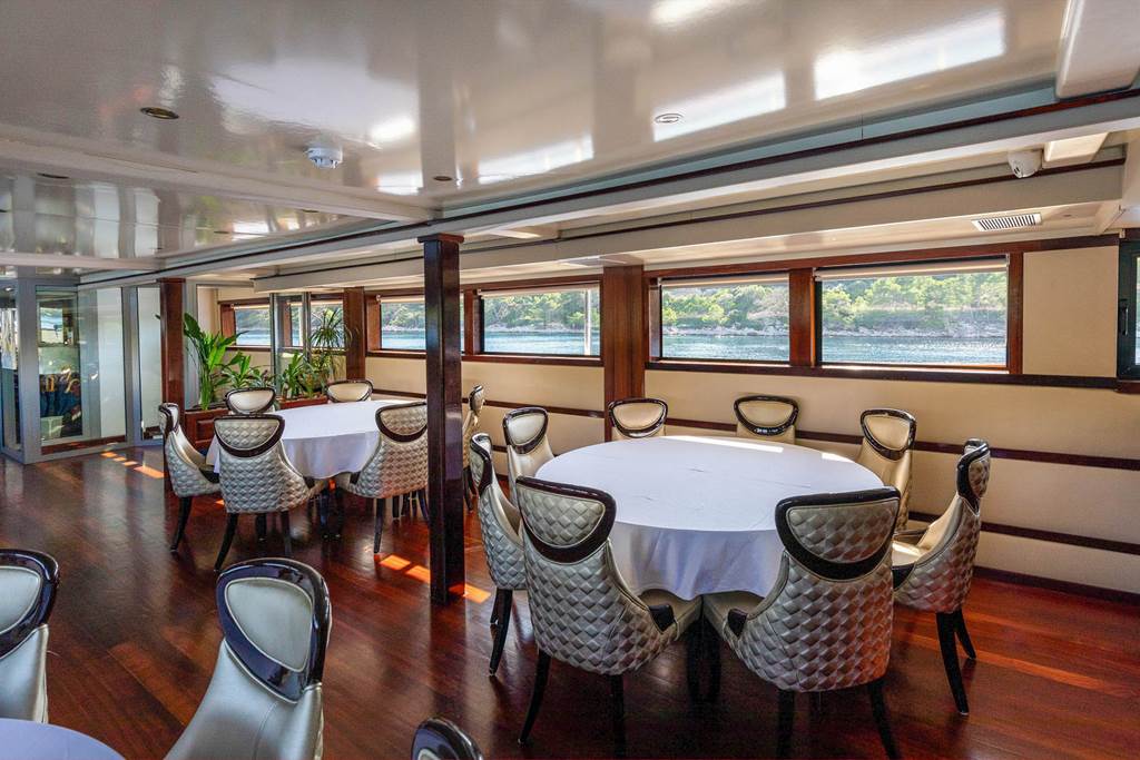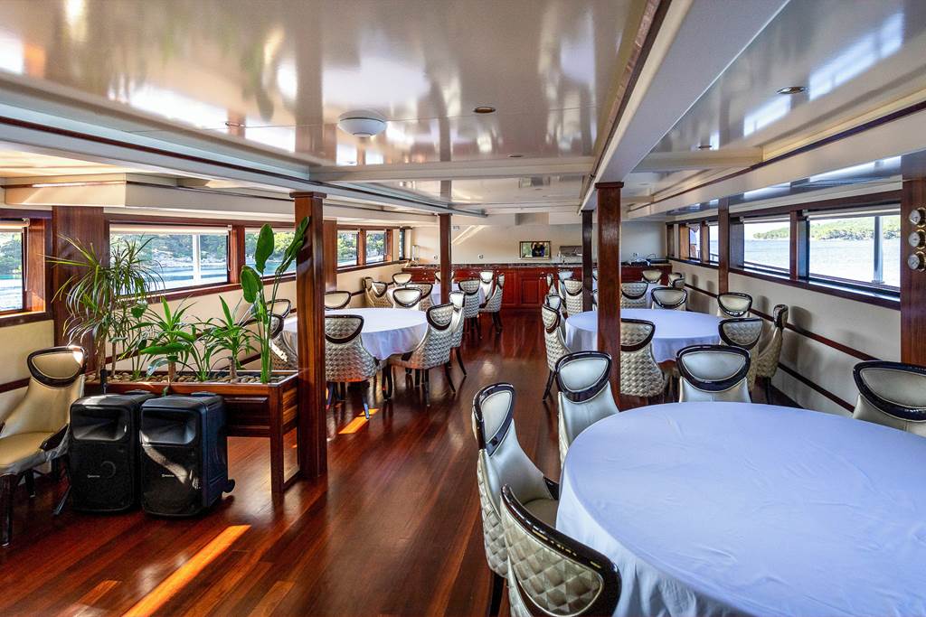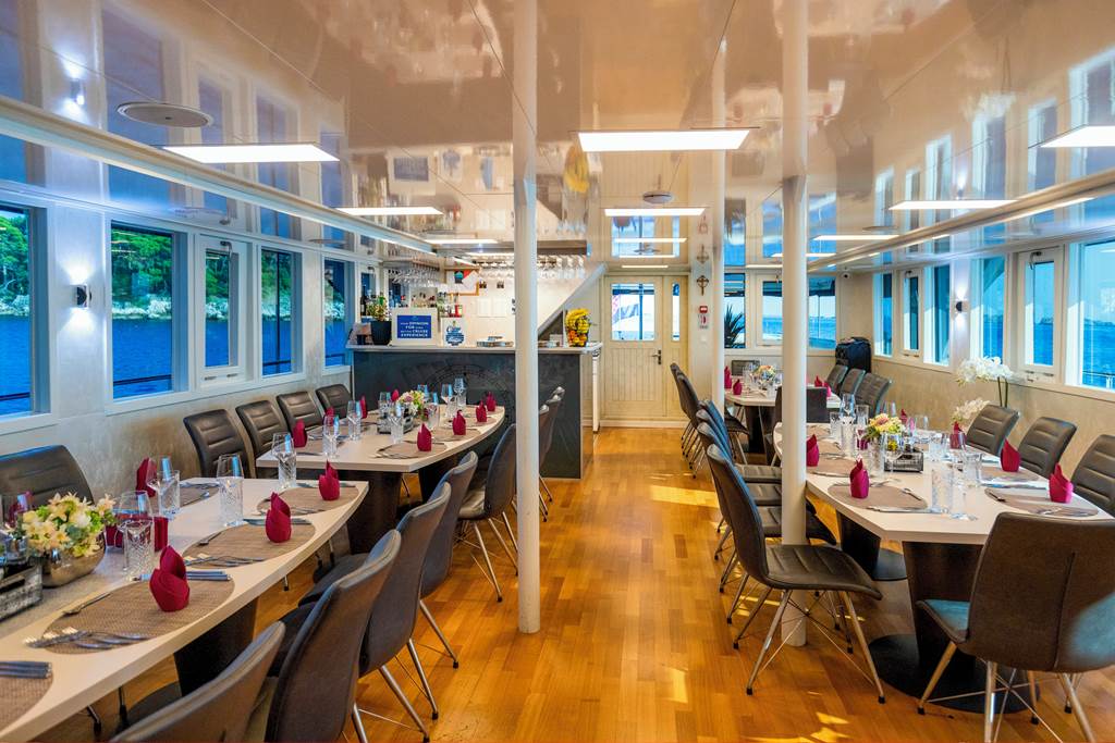 Life on board centres around the bright salon-restaurant and adjoining bar on the upper deck. Expect freshly prepared, locally inspired dishes with a casual, friendly atmosphere.