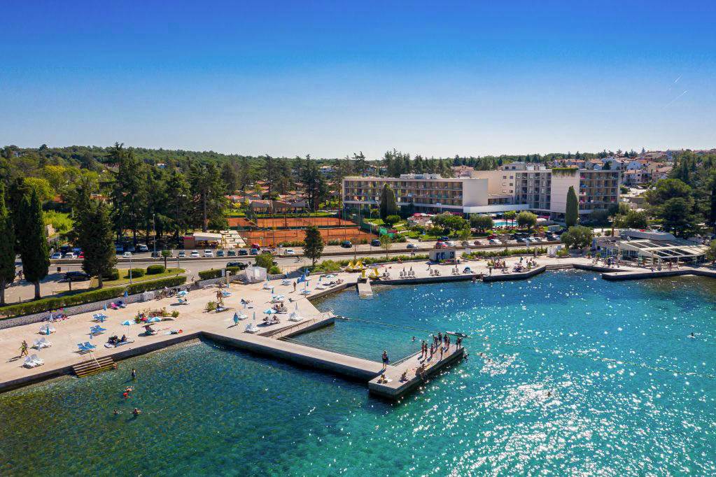 Set in the Špadići area just north of Porec, Hotel Park Plava Laguna sits a few steps from the rocky shoreline and pine-backed bathing platforms of the Istrian coast. You’re close enough to feel the sea breeze yet far enough from the old town to enjoy a resort-style atmosphere with space for pools, gardens and sports.