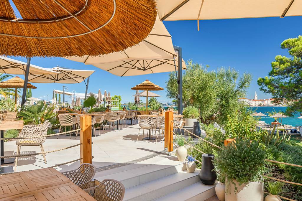 The main hub for meals, Isola serves buffet-style breakfast, lunch and dinner with show-cooking stations at breakfast and dinner. Expect a mix of Mediterranean, local Istrian dishes and familiar international favourites, plus a dedicated children’s buffet and kids’ menu options. Smart casual dress is requested (no beachwear).