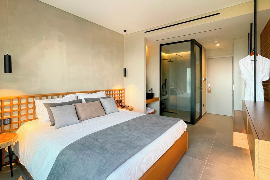 Amenities mirror the Superior Room, with flat-screen TV, Wi-Fi, safe, bathrobe and slippers, hairdryer, balcony, coffee and tea set-up, kettle, fridge, USB charging, shower bathroom, air conditioning and daily cleaning.