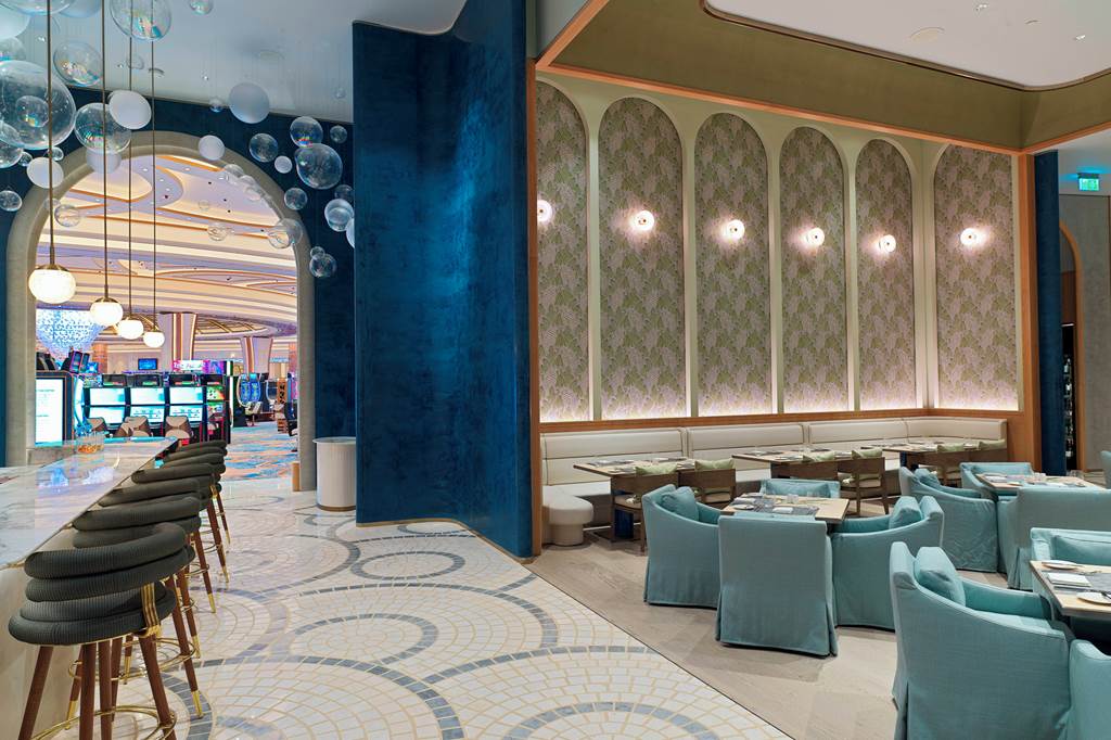 Dining is a major highlight at City of Dreams Mediterranean. Aura is the all-day hub, blending buffet and à la carte service with live cooking stations for international and local Cyprus flavours, plus a kids’ corner with child-friendly buffet and menus. For elevated evenings, Amber Dragon serves refined Chinese and Japanese dishes with show-cooking, while Anais brings a grown-up French Riviera mood in an adults-only setting.