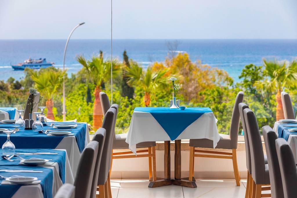 Aurora is the main buffet restaurant, serving breakfast with a mix of local and international favourites, plus highchairs for little ones. For laid-back lunches, Breeze Pool Bar offers à la carte Cypriot and international bites by the water, as well as snacks and drinks throughout the day.