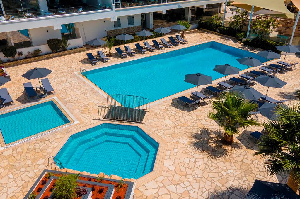 Fresh for 2025 after a full renovation, Cyprotel Florida Hotel puts you a short stroll from Ayia Napa’s Blue Flag Pantachou Beach with easy access to the harbour and nightlife. Expect smart, well-equipped rooms and suites (many with sea views and kitchenettes), two outdoor pools including a children’s pool, a small gym, and a friendly, relaxed atmosphere that works just as well for couples as it does for families.