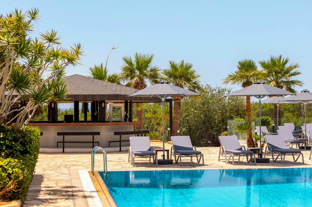 In the evening, Omnia Restaurant steps up the atmosphere with an à la carte menu spanning Greek, local and international dishes. After dark, head up to The Vista Bar, the rooftop lobby bar, for cocktails and sea‑view sunsets (typically open 17:00–00:00, subject to occupancy).