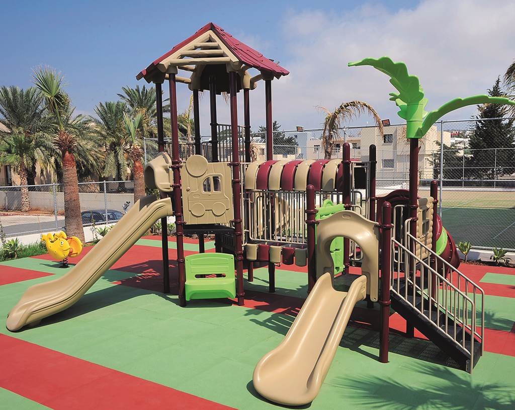 Yes. The hotel is family-friendly, offering a children’s section in the main pool, an indoor pool, a playground with slides and shaded areas, and highchairs in the restaurants. Junior suites sleep up to four people, making them ideal for families. The guideline child age is up to 11 years, but this may vary by room and dates.