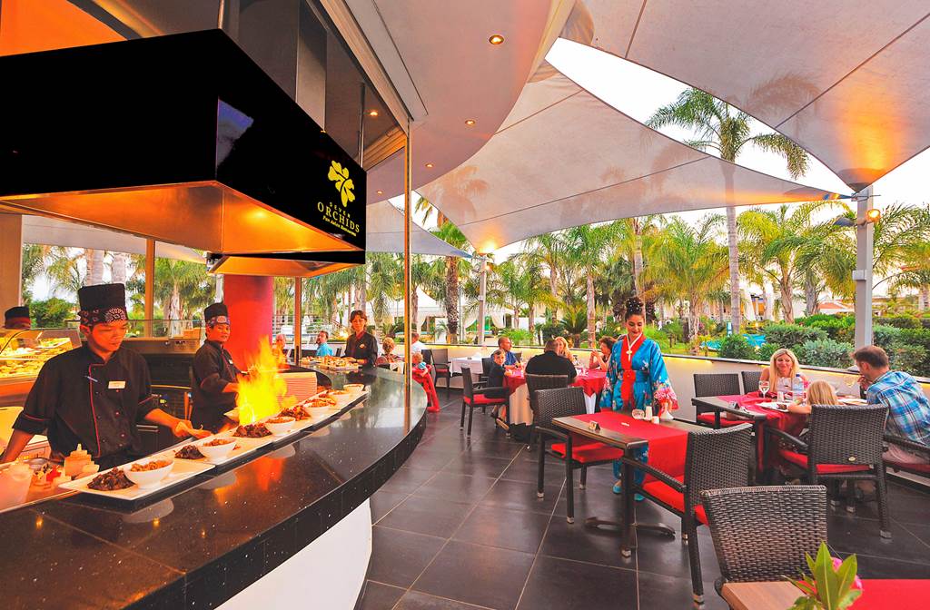 - Seven Orchids Pan-Asian – dinner-only Pan-Asian specialities with show cooking (Apr–Oct).