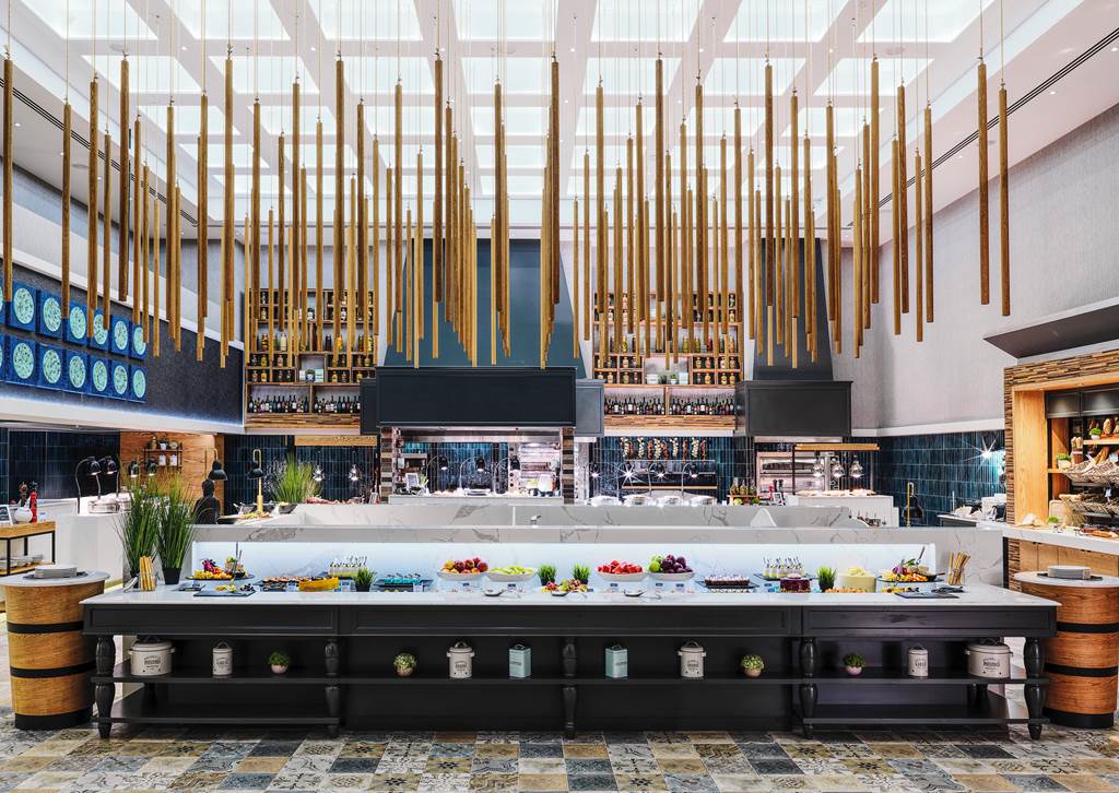 The main Royal Restaurant is a buffet venue serving breakfast, lunch and dinner, with show cooking, dedicated kids’ buffet and highchairs to make family mealtimes smoother.
