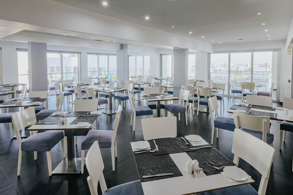 The Main Restaurant handles buffet-style breakfast and dinner with live show cooking. Expect a mix of international favourites and Cypriot touches, plus a kids’ buffet and highchairs to keep younger guests happy. Smart-casual dress is expected, and the hotel politely asks that beachwear isn’t worn at mealtimes.