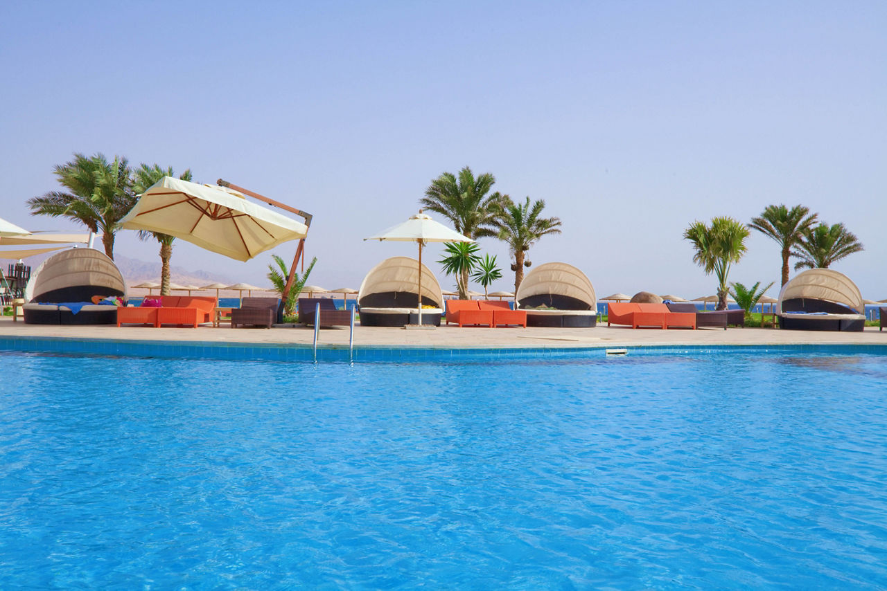Step beyond the pool terrace and you’re straight onto the hotel’s beachfront, where golden sand meets the turquoise Red Sea. The Nabq Bay shoreline is famed for its coral and marine life, so it’s worth packing a mask and snorkel. Depending on currents and reef protection, sea access may be via a jetty – always follow local safety advice and lifeguard guidance.