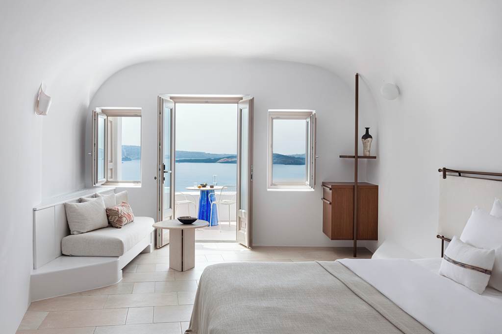 Classic Suites offer that quintessential Santorini experience: airy white interiors opening onto a balcony with sweeping sea views. A great choice if you don’t need a private pool but still want space, style and a romantic backdrop.