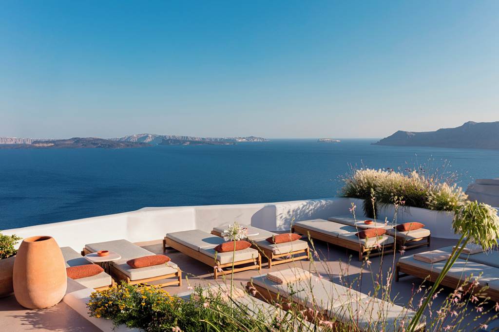 The hotel overlooks the caldera and Aegean, so you’ll wake to uninterrupted blue every morning and watch the sky turn to gold and pink from your terrace by evening. Venture into Oia to explore cave houses and galleries, then retreat back to the calm of the hotel’s terraces when the day-trippers roll in.