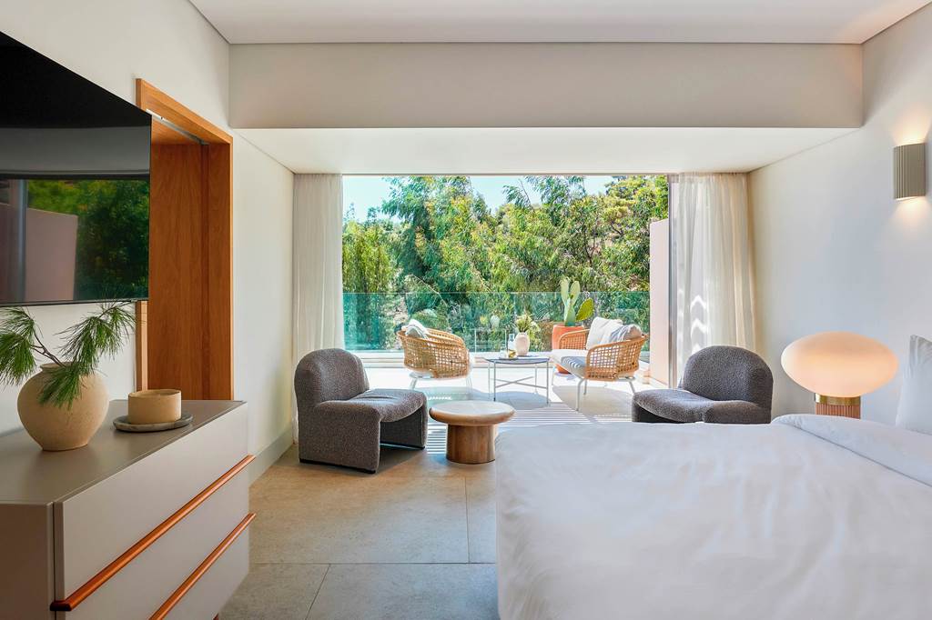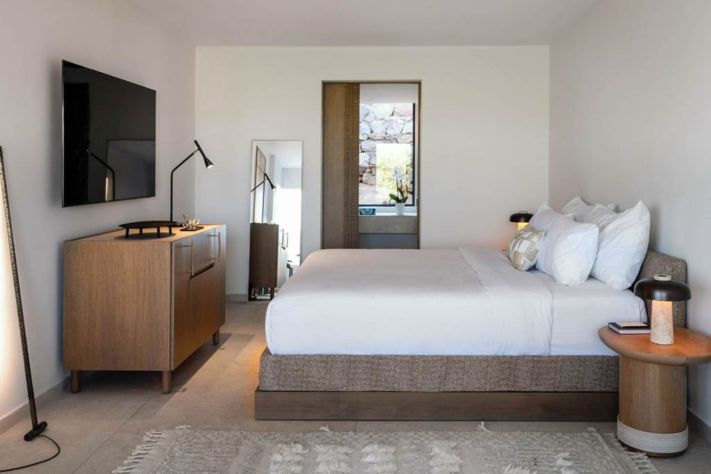 Accommodation at Cape Sounio feels more like a chic hillside village than a traditional hotel, with low-rise bungalows, suites and villas scattered among the trees. All rooms include free Wi‑Fi, air-conditioning, flat-screen TV, safe, hairdryer, bathrobes and slippers, coffee and tea-making facilities, and daily housekeeping with linen and towel changes on request. Minibars are available at an extra charge.