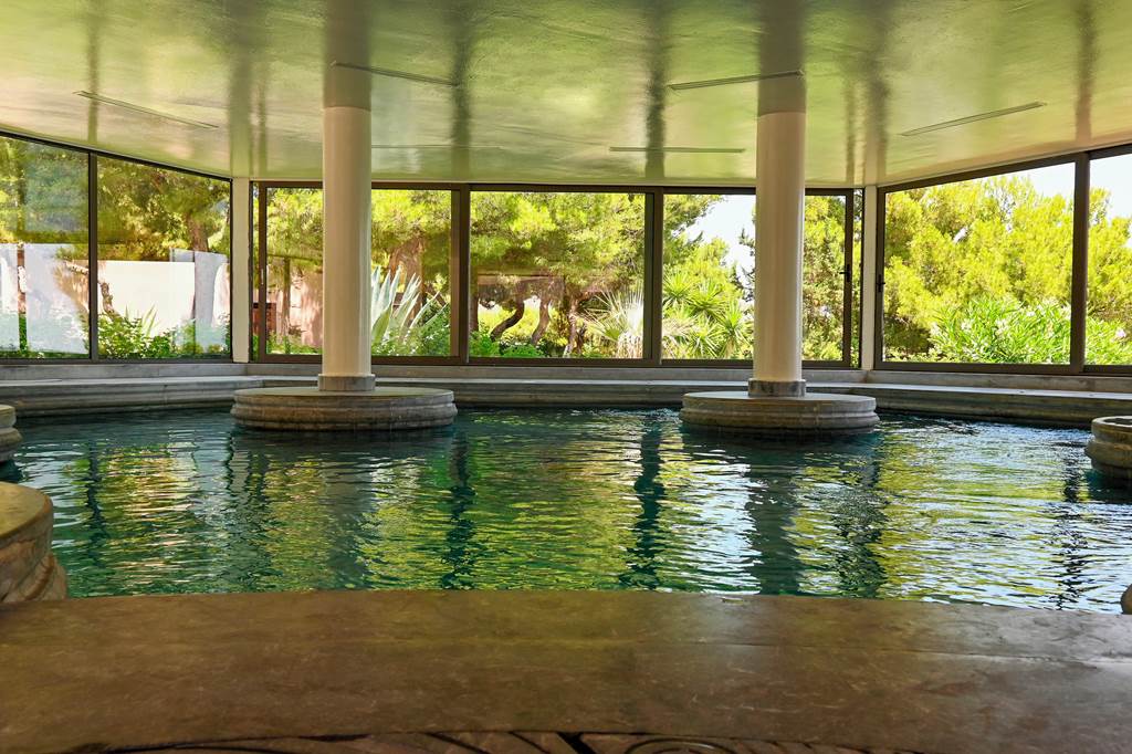 The resort’s main outdoor saltwater pool curves through the gardens, with a separate shallow section for children and plenty of sunbeds and parasols on the surrounding sun terrace. Pool towels are complimentary, and there’s a whirlpool corner for a gentle soak.