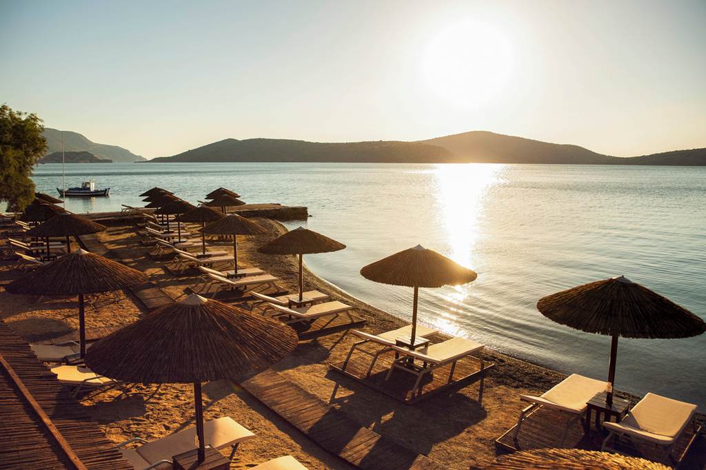 The hotel is set on a hillside around 60 metres from the nearest beach, reached via a path with some gradient. Elounda resort centre, where you’ll find more beaches, tavernas, bars and shops, is approximately 2km away – a short taxi ride or a longer walk if you enjoy hills and views.