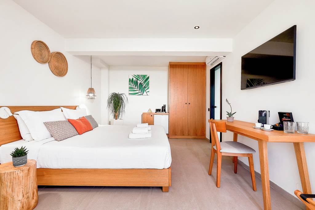 Set on the seafront side of the property, these stylish rooms open onto a terrace with direct access to a shared swim-up pool, bringing the water’s edge right to your door.