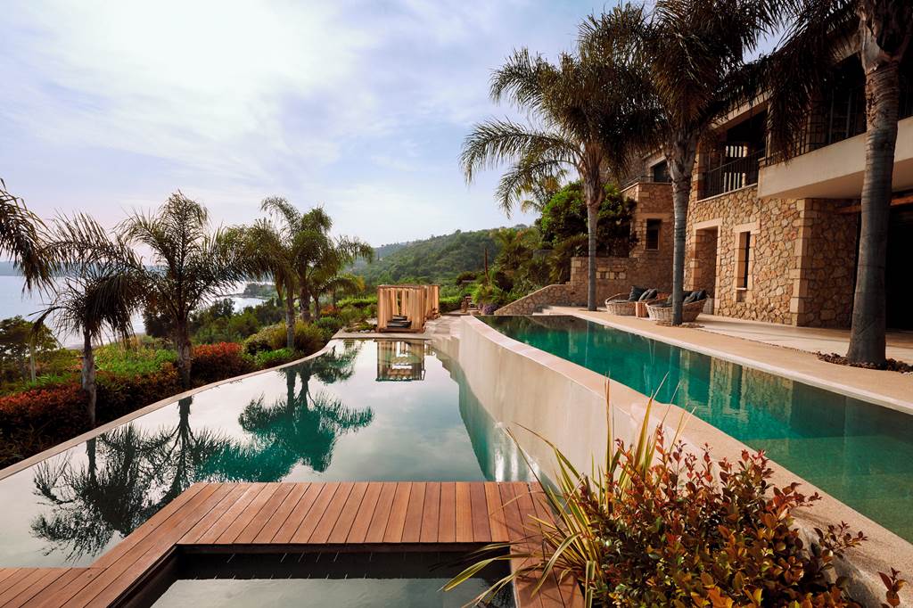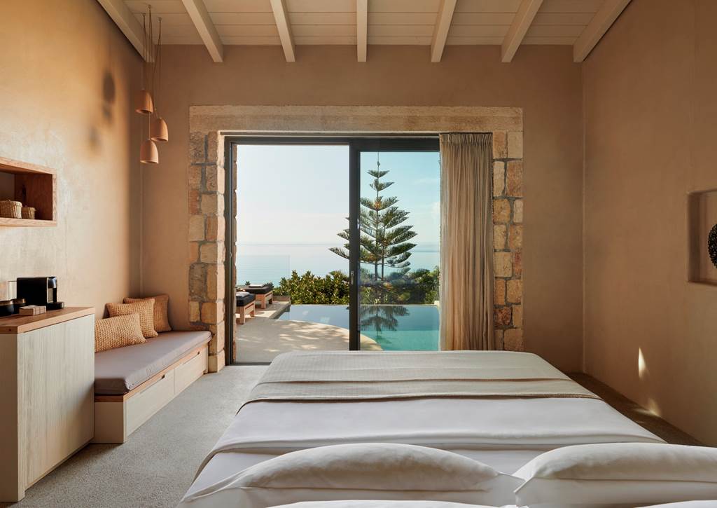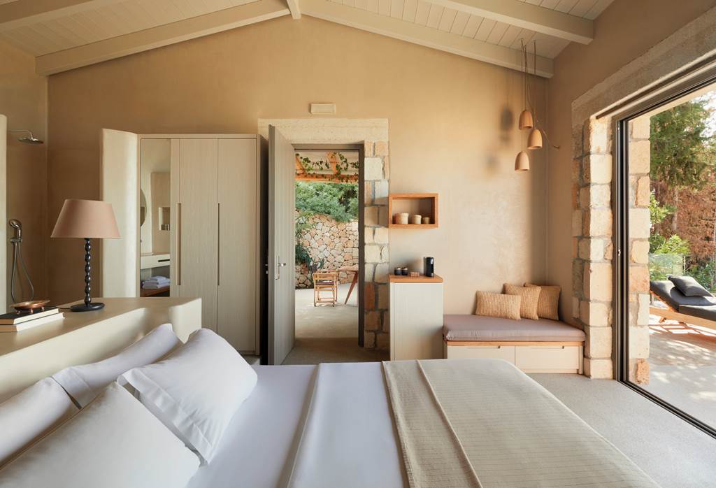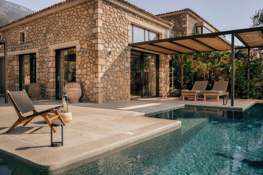 Set among aromatic pines and olive trees above Lourdas Beach, F Zeen Kefalonia feels like a little village of stone-built suites and villas stepping down towards the sea. Three freshwater pools, including a horizon-skimming infinity pool, generous outdoor terraces and soothing natural interiors keep the mood relaxed and indulgent, while a strong wellness programme, spa and open-air cinema mean your days can be as active or as idle as you like.