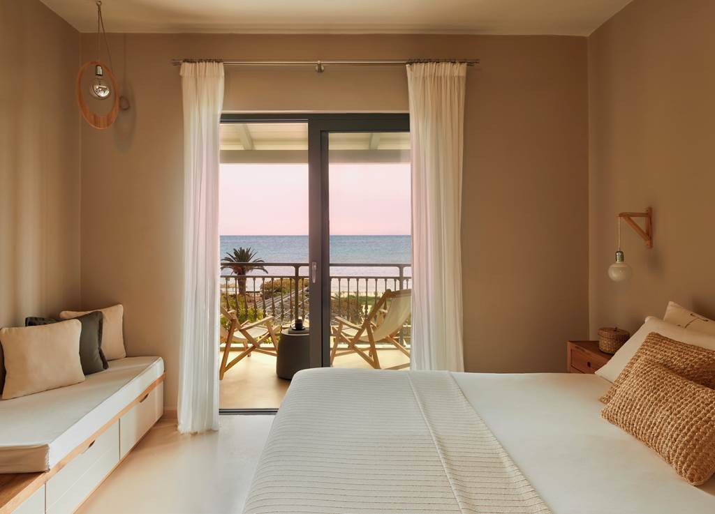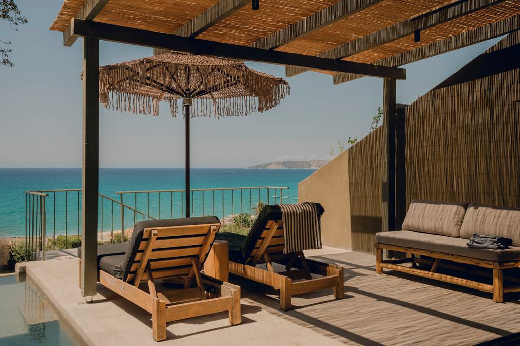 This design-led adults-only sanctuary tumbles down a green Kefalonian hillside towards one of the island’s loveliest beaches. F Zeen Kefalonia blends raw stone, blond wood and native planting with modern wellness facilities, multiple pools and cinematic Ionian Sea views. Private-pool suites, open-air cinema nights and thoughtful touches like reserved loungers on the sand turn this into a grown-up hideaway where you can genuinely switch off.
