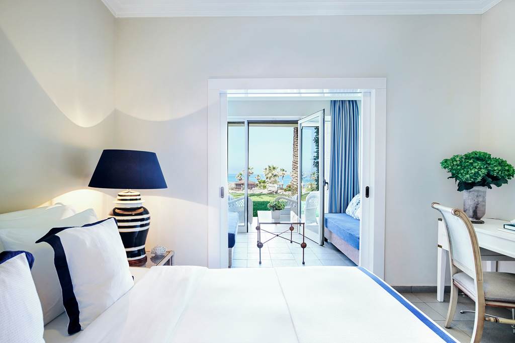 Stylish double rooms with frontal or side sea views, ideal for couples. Expect contemporary décor, a comfortable double or twin beds, balcony, flat-screen TV, Wi‑Fi, safe, coffee-making facilities, fridge, bathrobes and slippers, hairdryer, bathroom with bath and shower attachment, air-conditioning and daily cleaning.