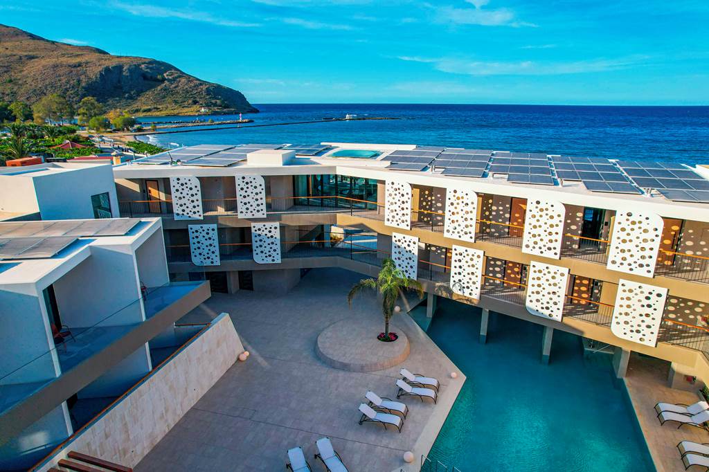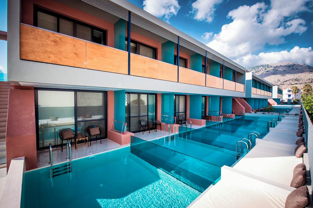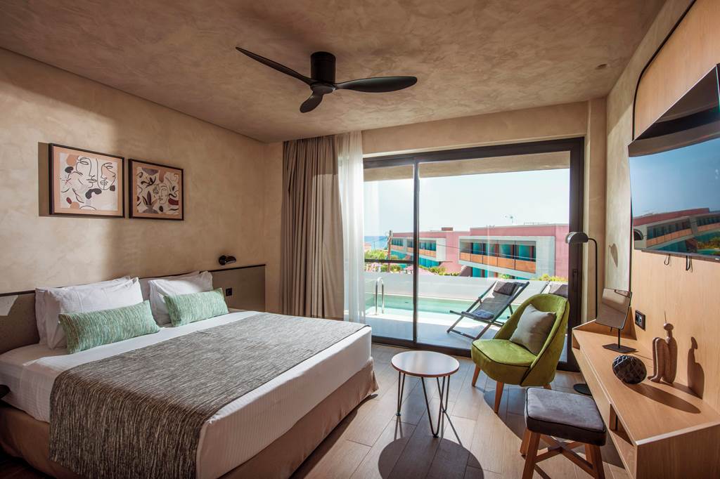 Tucked between Crete’s longest sweep of golden sand and a backdrop of mountains and rivers, Harmony Boutique Resort brings a cool, contemporary edge to the laid-back fishing village of Georgioupolis. Expect grown-up calm (minimum age 14 years), design-led rooms, excellent dining across several venues and a soothing spa scene – all just a few steps from the beach and resort centre.