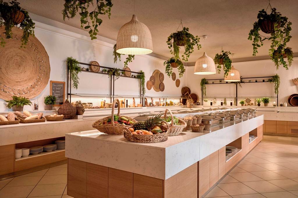 The main poolside restaurant serves a mix of international and Greek dishes for breakfast and dinner. Expect generous buffets with salads, grills, vegetarian options and homemade desserts. Highchairs are available and you can dine indoors or al fresco, depending on the weather.