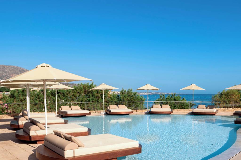 Perched on a hillside cascading gently down to a sandy bay, Ikaros Beach Luxury Resort and Spa is a polished, adults-only sanctuary on Crete’s sun-drenched north coast. Think whitewashed stone buildings, cobbled paths lined with bougainvillea, and infinity-style pools that seem to spill straight into the Aegean. Six restaurants, three bars, a soothing spa and a wide choice of bungalows and suites – many with private pools – make this a standout choice for couples who want that “grown-up Greek island” feel with five-star comfort built in.