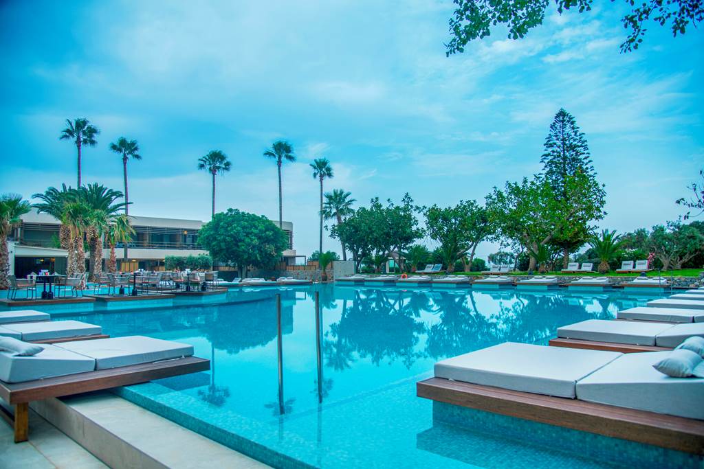 Perched on a sun-drenched hillside above Hersonissos, King Minos Retreat Resort & Spa blends traditional Cretan charm with crisp, modern design. Think whitewashed architecture, bougainvillea-draped terraces and a calm freshwater pool, all within walking distance of sandy Star Beach and the buzzy nightlife of the north coast. With All Inclusive Plus dining, a pampering spa, gym and an impressive line-up of rooms from cosy doubles to indulgent private-pool suites, it’s an easy choice for couples and families chasing that classic Greek-island escape.
