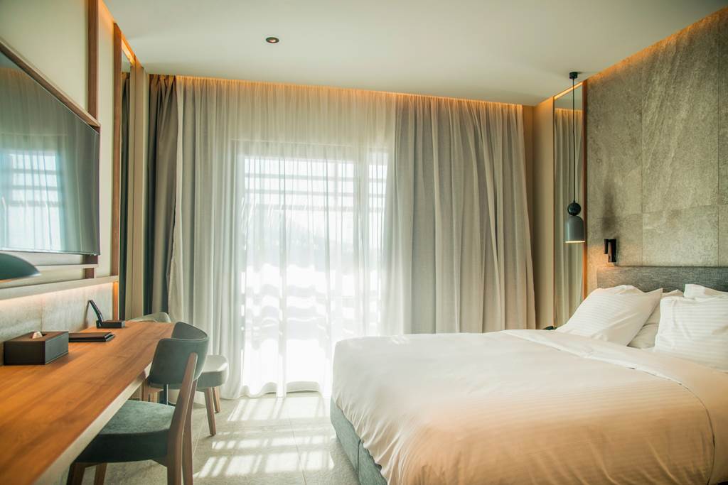 The hotel is not directly on the sand but sits on a hillside approximately 400m from Star Beach. It’s an easy walk downhill to reach the sandy shore, beach clubs and watersports. The return walk is uphill, so guests with reduced mobility may prefer to use local taxis.
