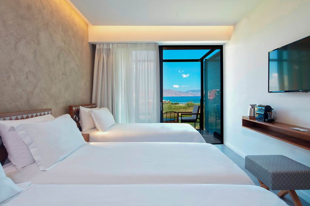 Similar in layout and facilities to the Partial Sea View Rooms, but with a fuller outlook over the Aegean. Ideal if sunset balcony time is a key part of your holiday ritual.
