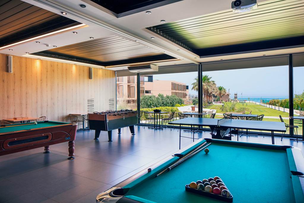 The hotel’s buffet restaurant, Perle Noire, serves breakfast and dinner with live show-cooking stations. Expect a mix of Greek and international dishes, with plenty of local produce and seasonally inspired recipes. There’s an emphasis on fresh salads, grilled meats and fish, plus vegetarian options and indulgent desserts. Beachwear isn’t permitted, and smart-casual dress is appreciated in the evenings.