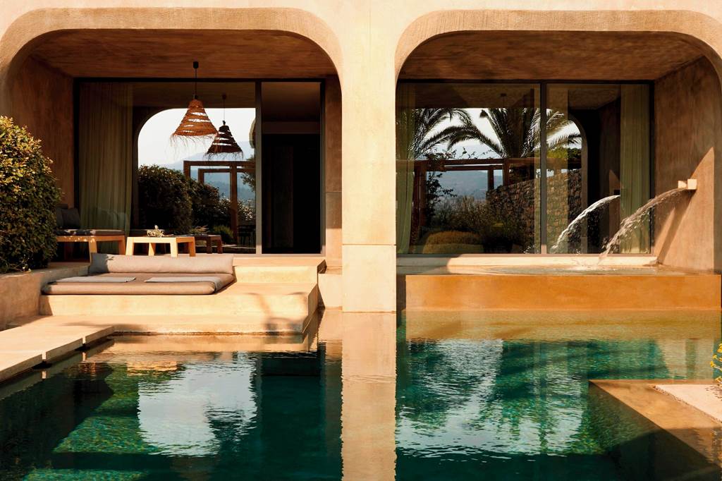 A standout choice for special occasions, the Waterfall Suites feature a private swimming pool and terrace with sunbeds, creating your own pocket of privacy. Expect a stylish open-plan layout, premium bedding, flat-screen TV, Wi‑Fi, safe, air conditioning and spa-style bathroom with shower, plus coffee machine, pillow menu, turndown service, bathrobes and slippers.