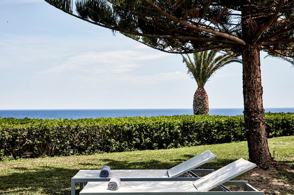 These junior suites combine a garden setting with sea views, plus a private terrace for outdoor lounging. Inside there’s extra space to unwind, with seating area, flat-screen TV, Wi‑Fi, safe, air conditioning, coffee facilities, pillow menu, turndown service and a shower bathroom with bathrobes and slippers.