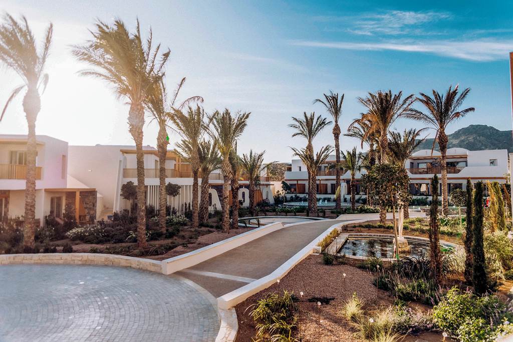 On Crete’s quieter south coast near Ierapetra, Ostria Resort & Spa stretches along a wide pebbled beachfront backed by rugged hills and big blue skies. You’re around 5km from Ierapetra’s flower-fringed old town, tavernas and harbour, yet the resort itself feels self-contained with its own “village square”, beachfront pools and gardens.