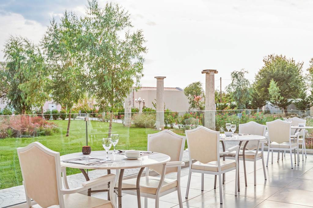Most buffet meals are served at the sister property, Sandy Beach Resort – mainly in Elia Main Restaurant and Ammos Snack Restaurant. You also have access to several à la carte restaurants (including Ermis Gyro on the Sandy Villas terrace), with typically one à la carte visit per stay included as part of the package. Exact venues and inclusions depend on season and your board details.