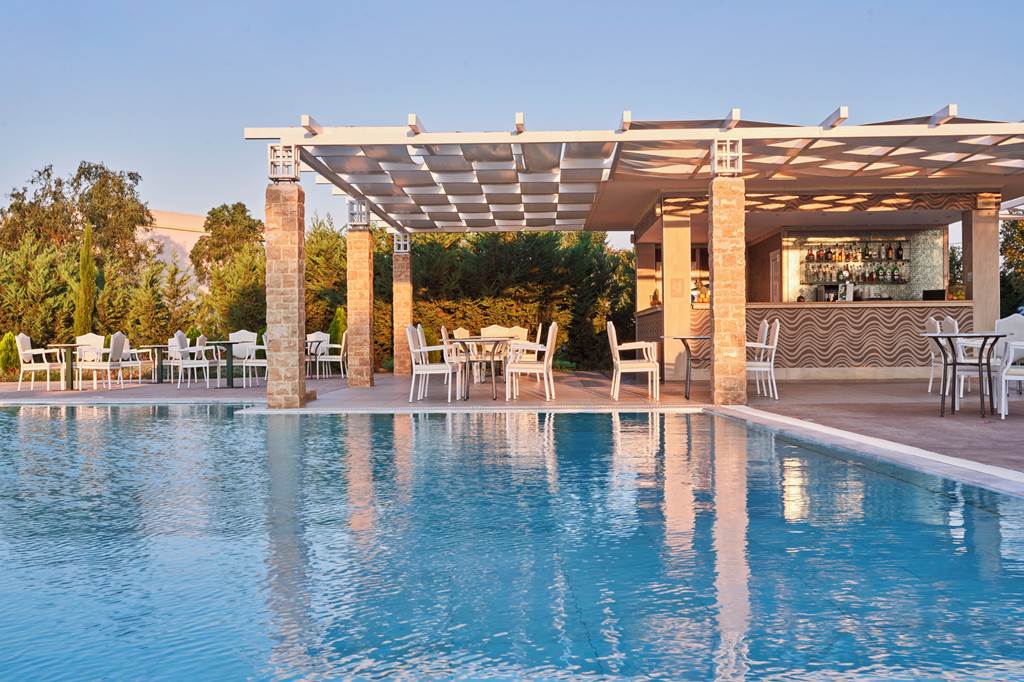 Sandy Villas Resort in St George South feels more like a chic villa enclave than a classic hotel. Think low-rise whitewashed buildings, sleek swim-up pools and a quiet, contemporary style – with the bonus of full All Inclusive and access to the extensive facilities at neighbouring Sandy Beach Resort. It’s a strong choice if you want modern design, space to unwind and the freedom of multiple pools, bars and dining venues on Corfu’s softer, sandier south-west coast.