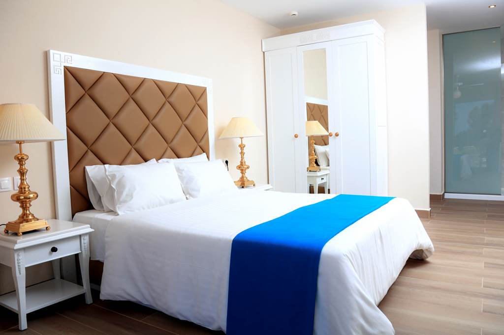 Ideal for couples or small families, these rooms sleep 2–3 guests with the same contemporary décor and direct access to a shared swim-up pool from your terrace. Facilities include flat screen TV, Wi‑Fi, safe, air-conditioning, shower bathroom, hairdryer, fridge, kettle and coffee set-up, sunbeds on the terrace and daily housekeeping.