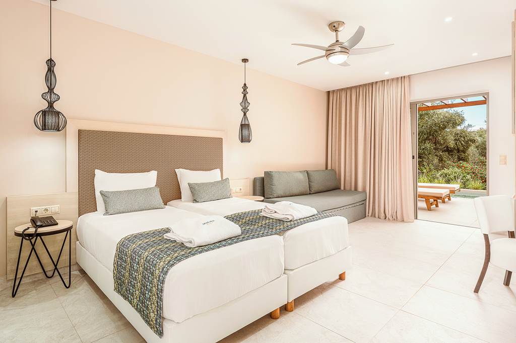 Chania’s atmospheric old town and Venetian harbour are close enough for evening wanderings along cobbled streets, browsing the market and dining by the water, yet far enough that the hotel itself keeps a calm, family-friendly feel.