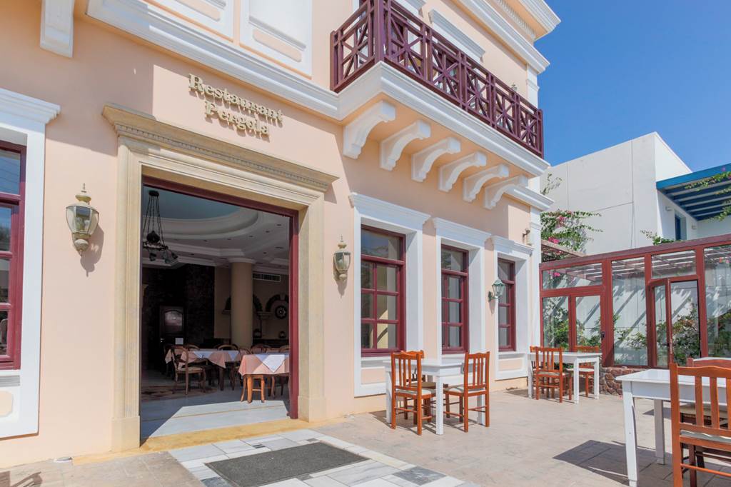 • Pergola Restaurant – Buffet and à la carte; international, Greek and local cuisine for breakfast, lunch, dinner and snacks, located on the terrace. Beachwear is not permitted during dinner.