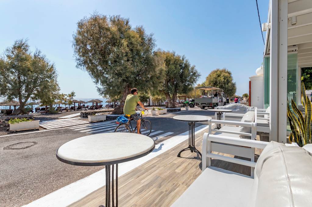 Yes. One of Veggera’s biggest draws is its location. Step outside and you’re immediately on Perissa’s beachfront promenade, lined with traditional tavernas, cocktail bars, cafés and beach clubs. Whether you fancy simple gyros, fresh grilled fish or sunset cocktails on the sand, you won’t need a car to find good options.