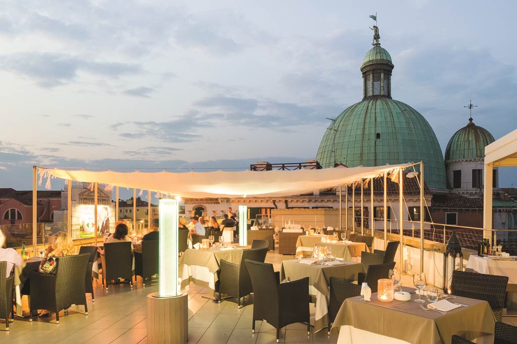 Set on the rooftop terrace (usually open 15 May–15 September), this à la carte venue pairs creative Italian and international cuisine with sweeping canal and city views – ideal for a special-occasion dinner or sunset aperitivo.